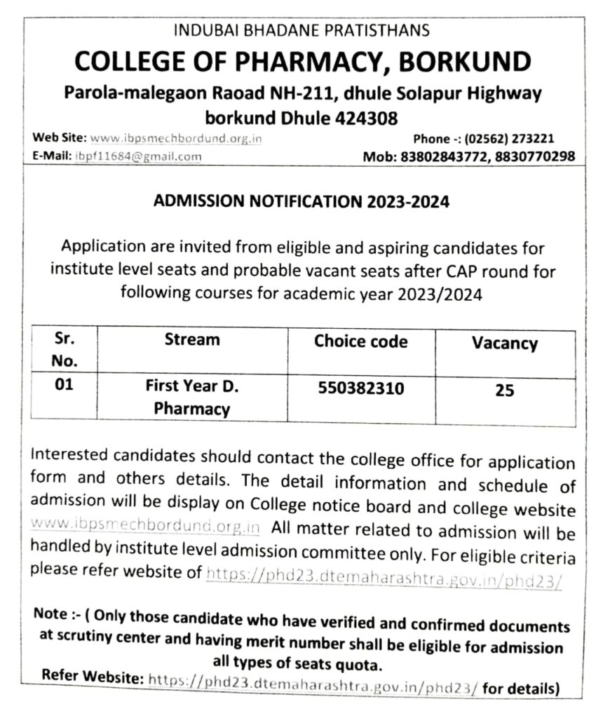 IBP's Indubai College of Pharmacy, Borkund
